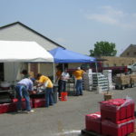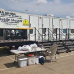 OzarkFBC provides assistance during disasters with mobile shower unit. The Shower unit is fully equipped with the necessary supplies for rapid deployment. The shower unit has six shower with dressing rooms and ten hand washing sinks located along each side of the unit.